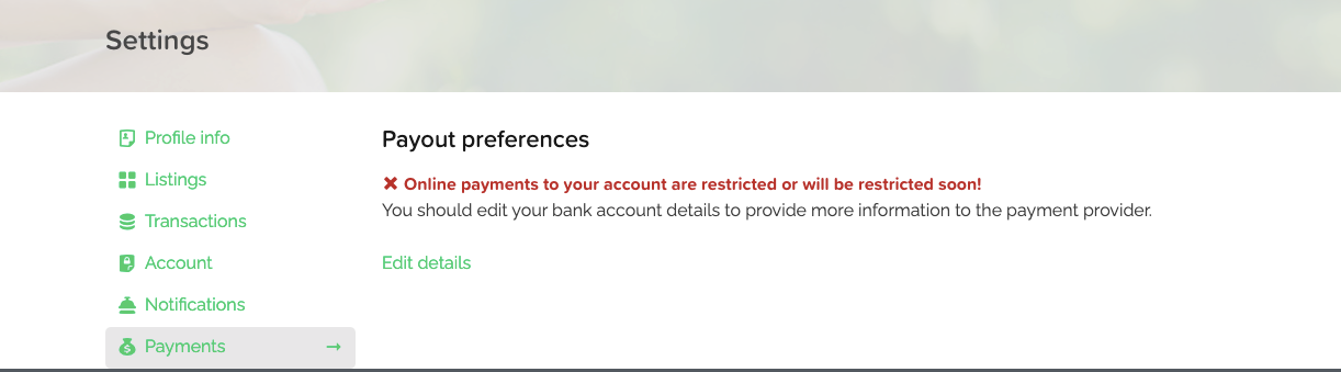 Once you've created a listing on the marketplace, you need to set up your payment details. Otherwise your listing is un-bookable by buyers. Here's how to do that.